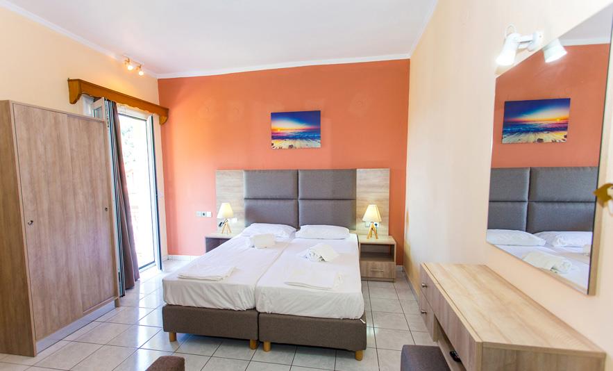 Sistemazioni: studios che possono ospitare fino a 4 persone, tutti dotati di angolo cottura attrezzato, frigo, aria condizionata, tv, wi-fi gratis, bagno con doccia, balcone.